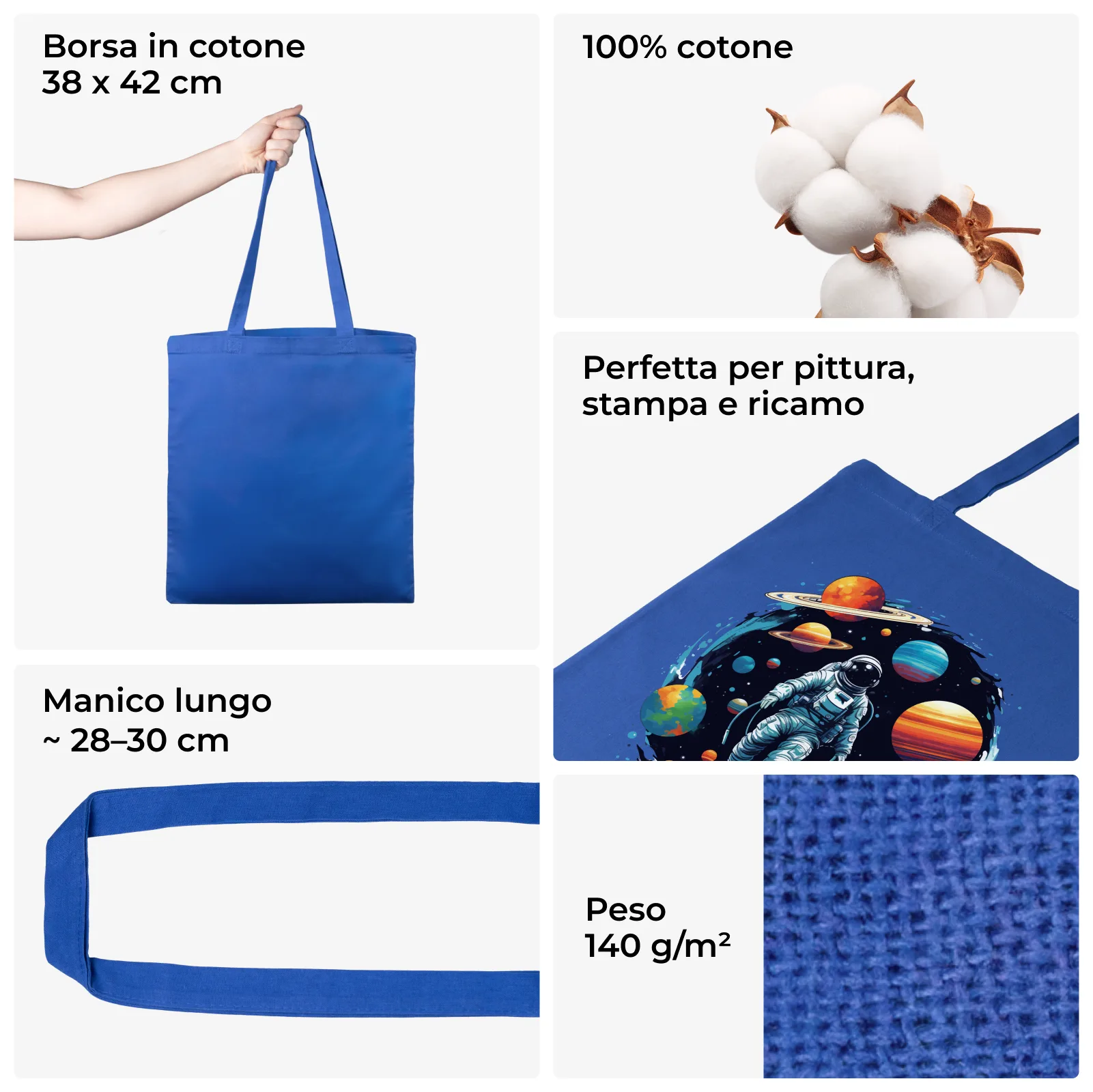 1 pz Borsa in cotone 38 x 42 cm con manici lunghi - azzurra