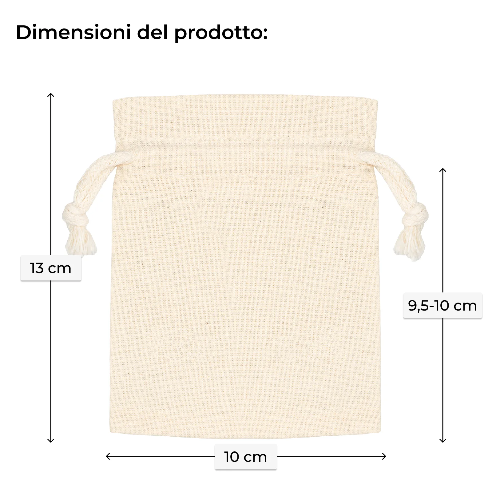 Ogni confezione contiene 10 sacchetti in cotone naturale.