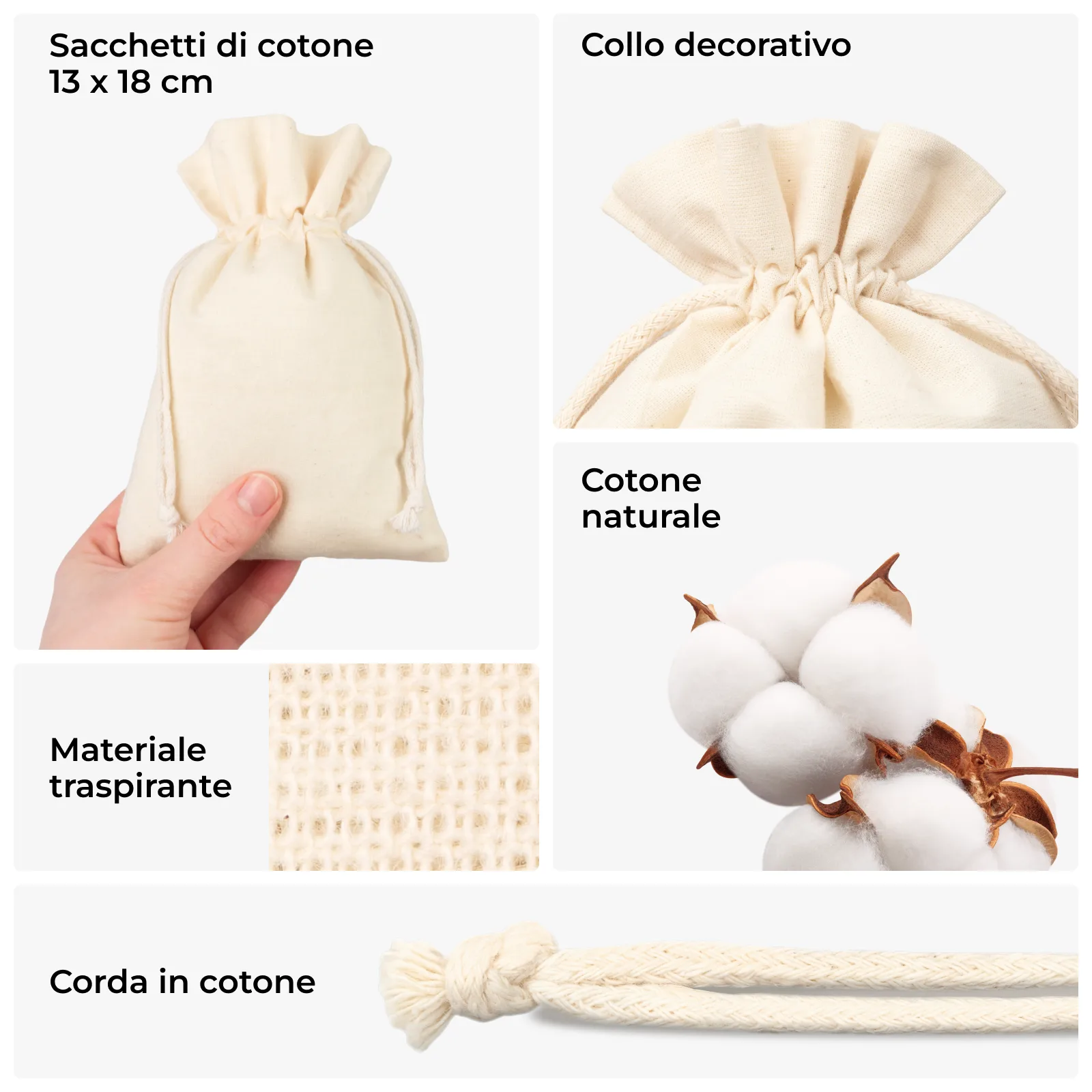 10 pz Sacchetti di cotone 13 x 18 cm - naturale
