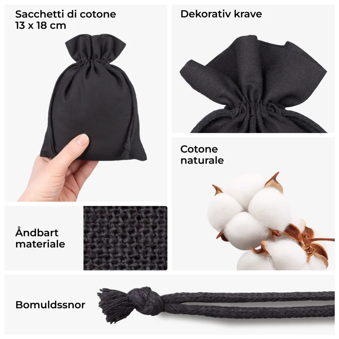 10 pz Sacchetti di cotone 13 x 18 cm – nero