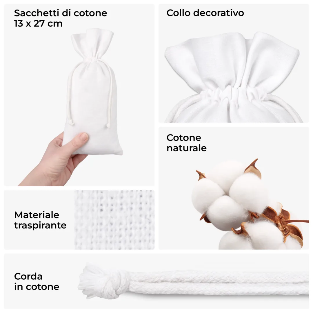 I sacchetti di cotone piccoli sono perfetti anche come originale confezione regalo! Li puoi utilizzare anche a casa, a scuola o in viaggio: mettici dentro quello che vuoi e sarai sempre organizzato.