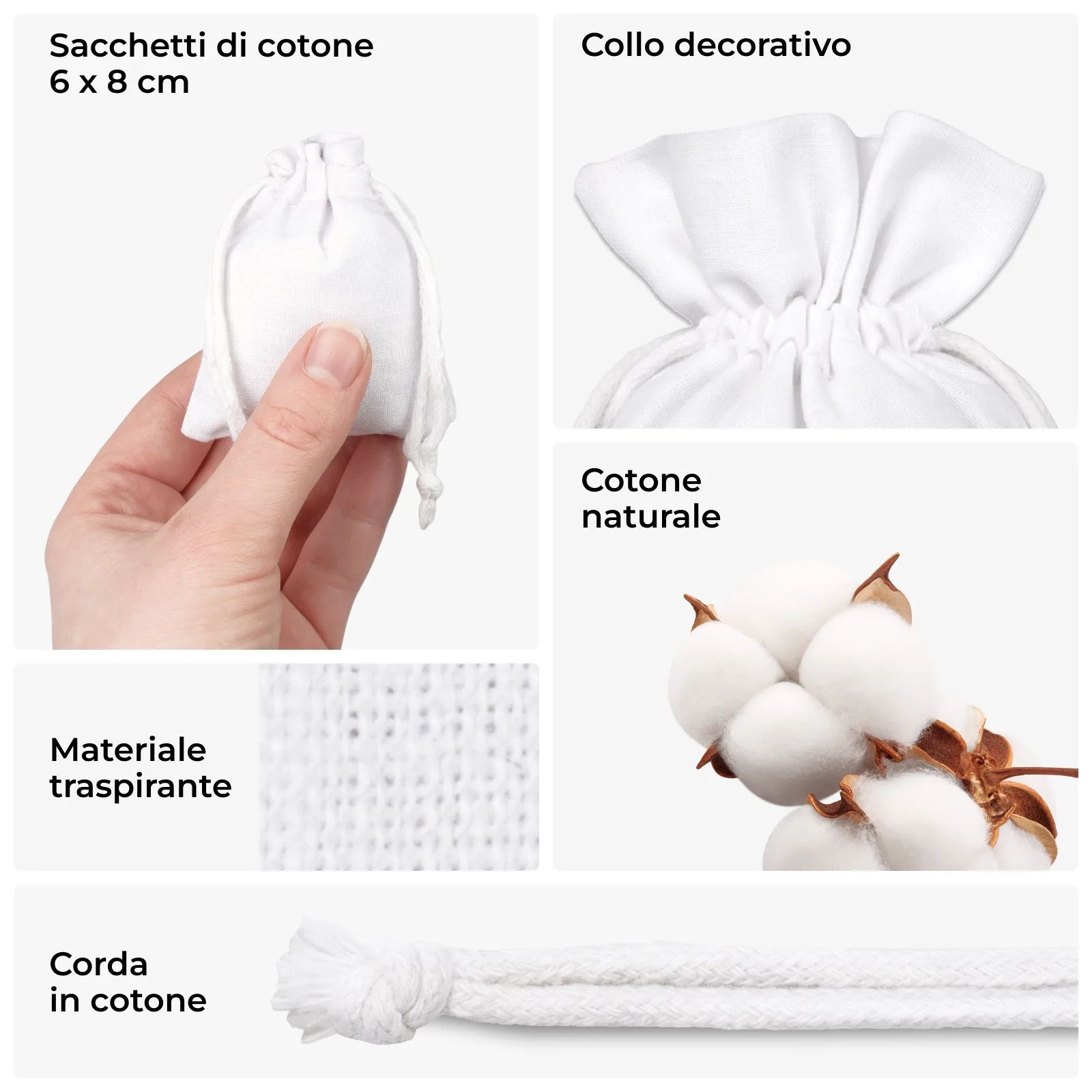 10 pz Sacchetti di cotone 6 x 8 cm - bianco