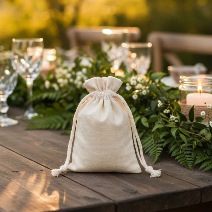 Qui puoi acquistare bellissimi sacchetti riutilizzabili cuciti al 100% in cotone di colore naturale. Utilizzali come meglio desideri: come confezione regalo per bomboniere per gli invitati a un matrimonio (decorazione della tavola in stile rustico o boho), confezione di prodotti o una piccola borsa regalo per souvenir. Questi piccoli sacchetti in cotone sono anche una confezione perfetta per i gioielli.