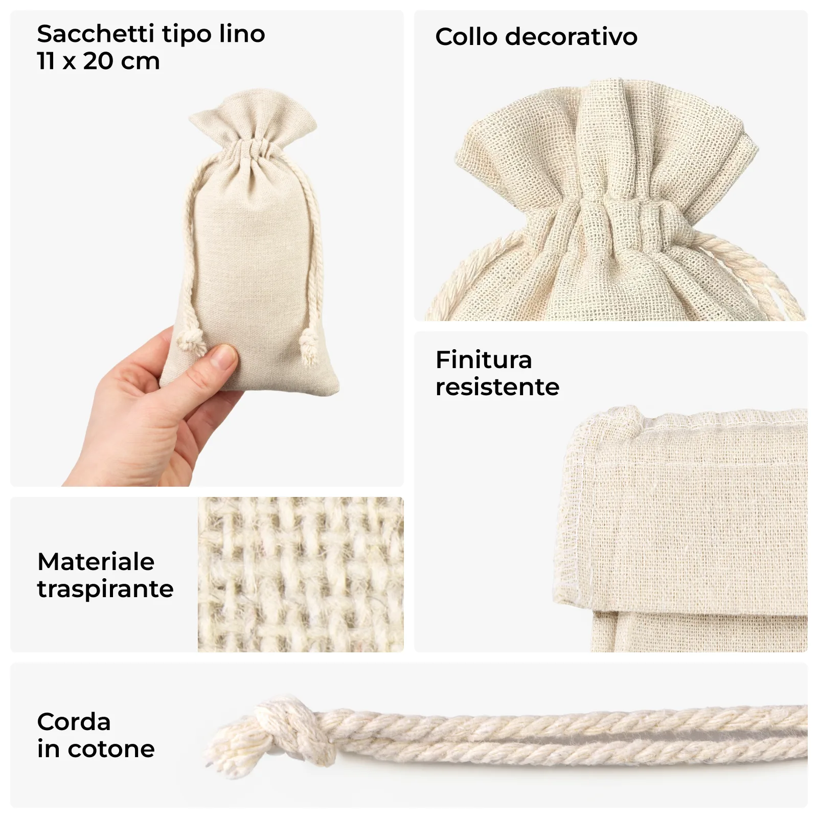 10 pz Sacchetti tipo lino 11 x 20 cm - naturale