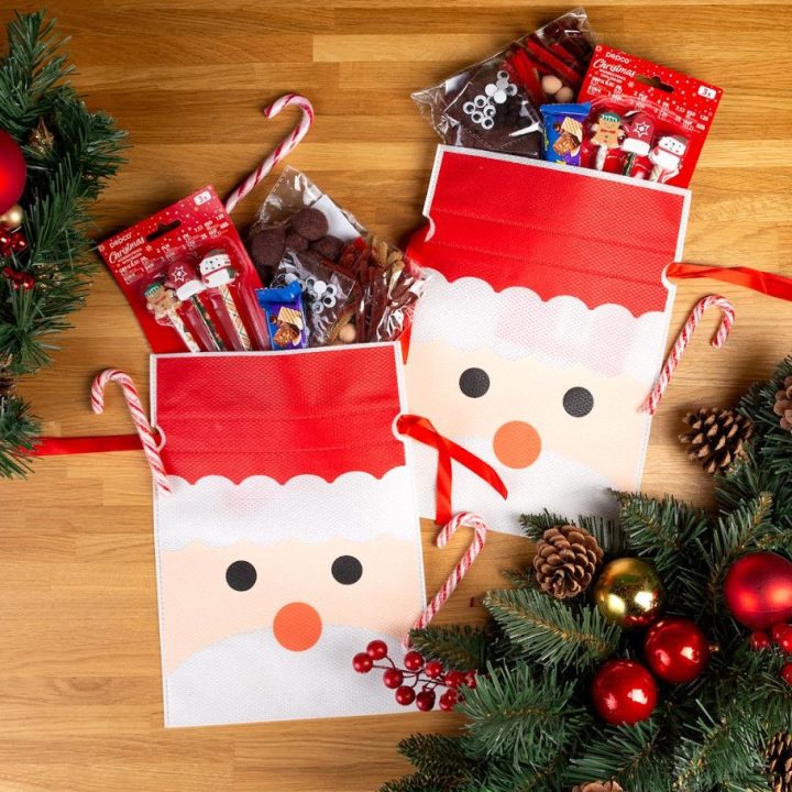 Utilizza questi sacchetti TNT con stampa natalizia per: