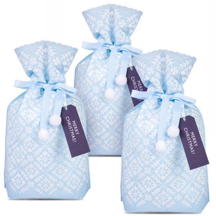 Set 3 sacchi TNT di Natale 30 x 45 cm azzurri - confezione regalo pronta per aziende