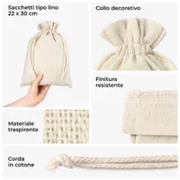 3 pz Sacchi tipo lino 22 x 30 cm – naturale