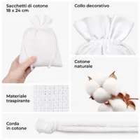 5 pz Sacchetti di cotone 18 x 24 cm – bianco
