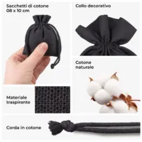 10 pz Sacchetti di cotone 8 x 10 cm – nero