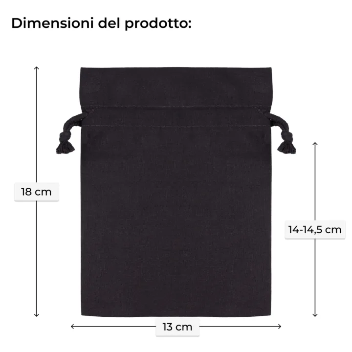 Qui puoi acquistare sacchetti neri riutilizzabili ed ecologici in tessuto naturale. Queste borse con cordino nella coulisse sono realizzate in cotone di alta qualità, grazie a ciò li potrai usare ripetutamente.