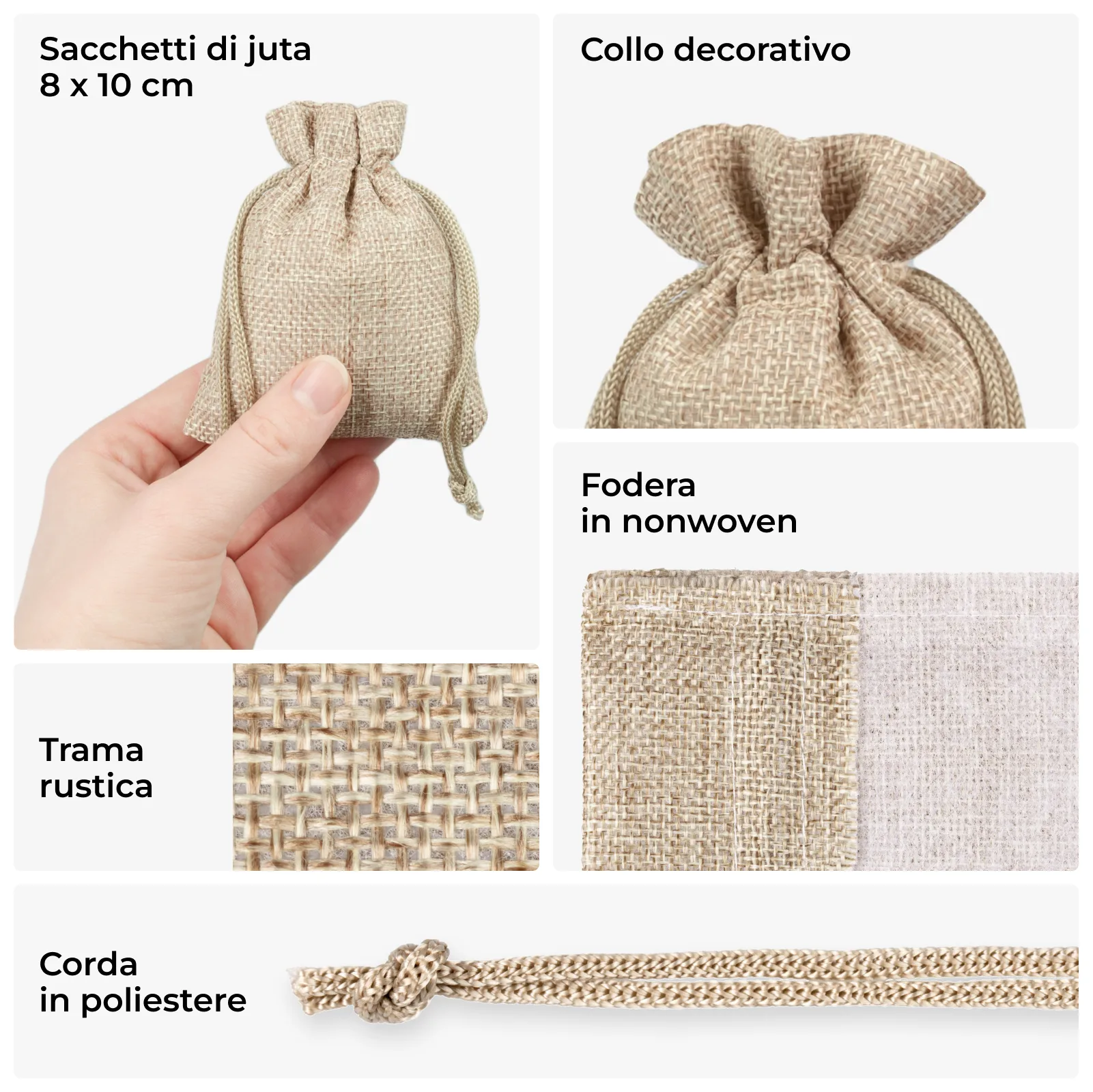 10 pz Sacchetti di juta 8 x 10 cm – naturale