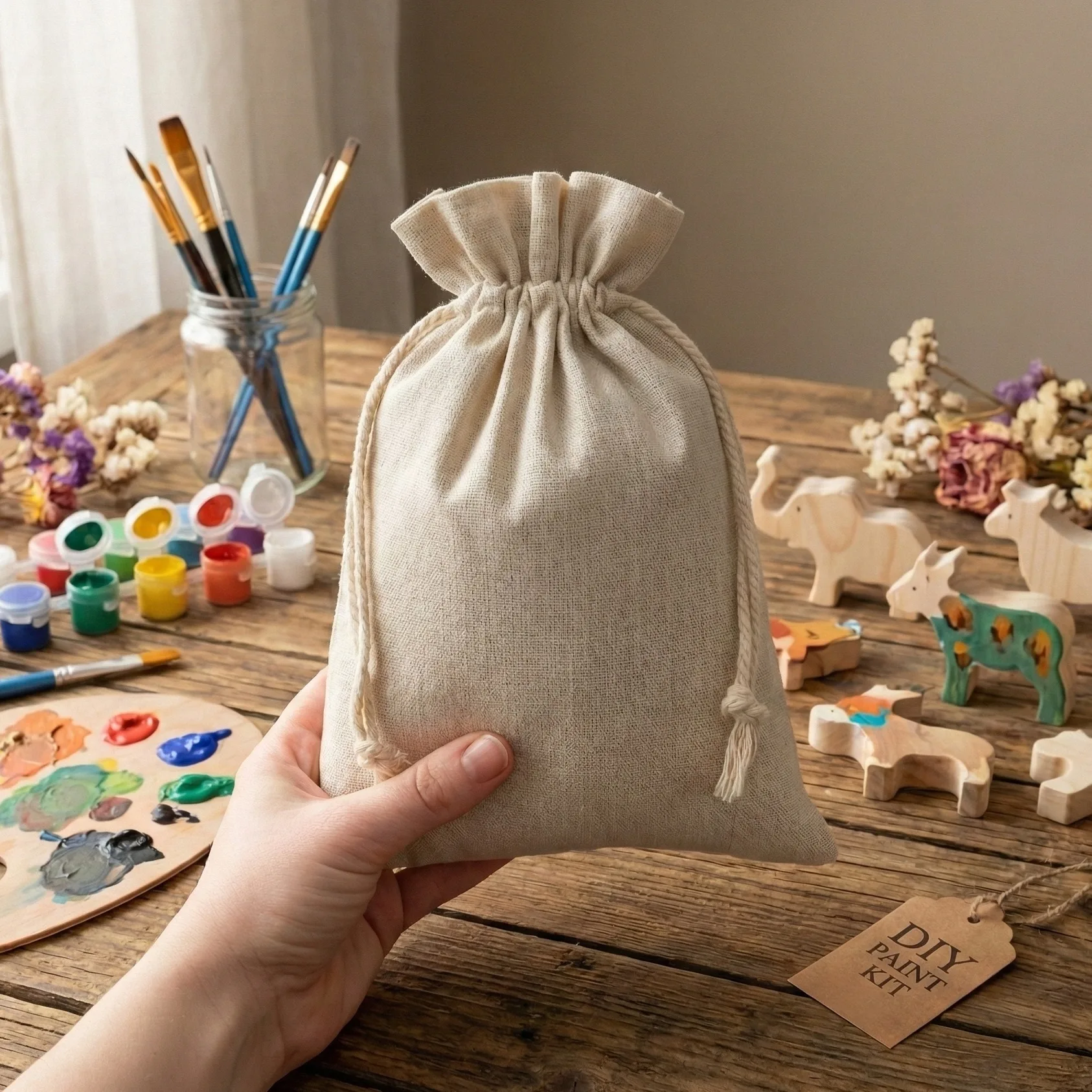 I sacchetti di stoffa nel colore del lino naturale sono ideali come confezioni per prodotti e borse per gadget pubblicitari (offriamo la possibilità di personalizzarli). Vale anche la pena usarli come confezioni regalo originali e come elementi di decorazioni in stile rustico e boho. I nostri clienti ad esempio li usano come confezioni per artigianato, candele e cere profumate. Metti anche tu le tue idee nelle nostre borse!