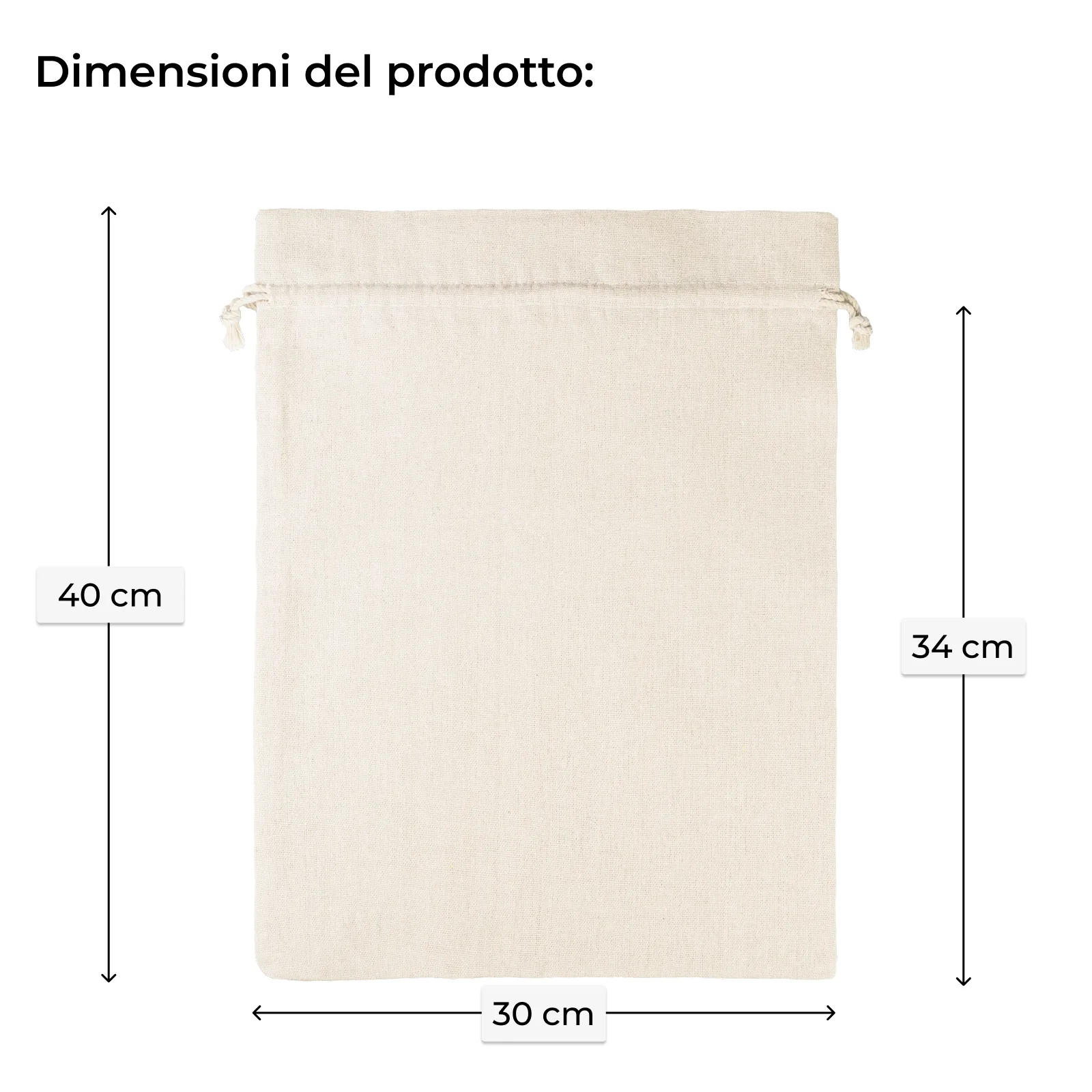 Scopri i nostri grandi sacchi in stoffa universali con doppio cordino di cotone nella coulisse! La confezione contiene 1 sacco grande di colore lino naturale di dimensioni 26 x 35 cm.
