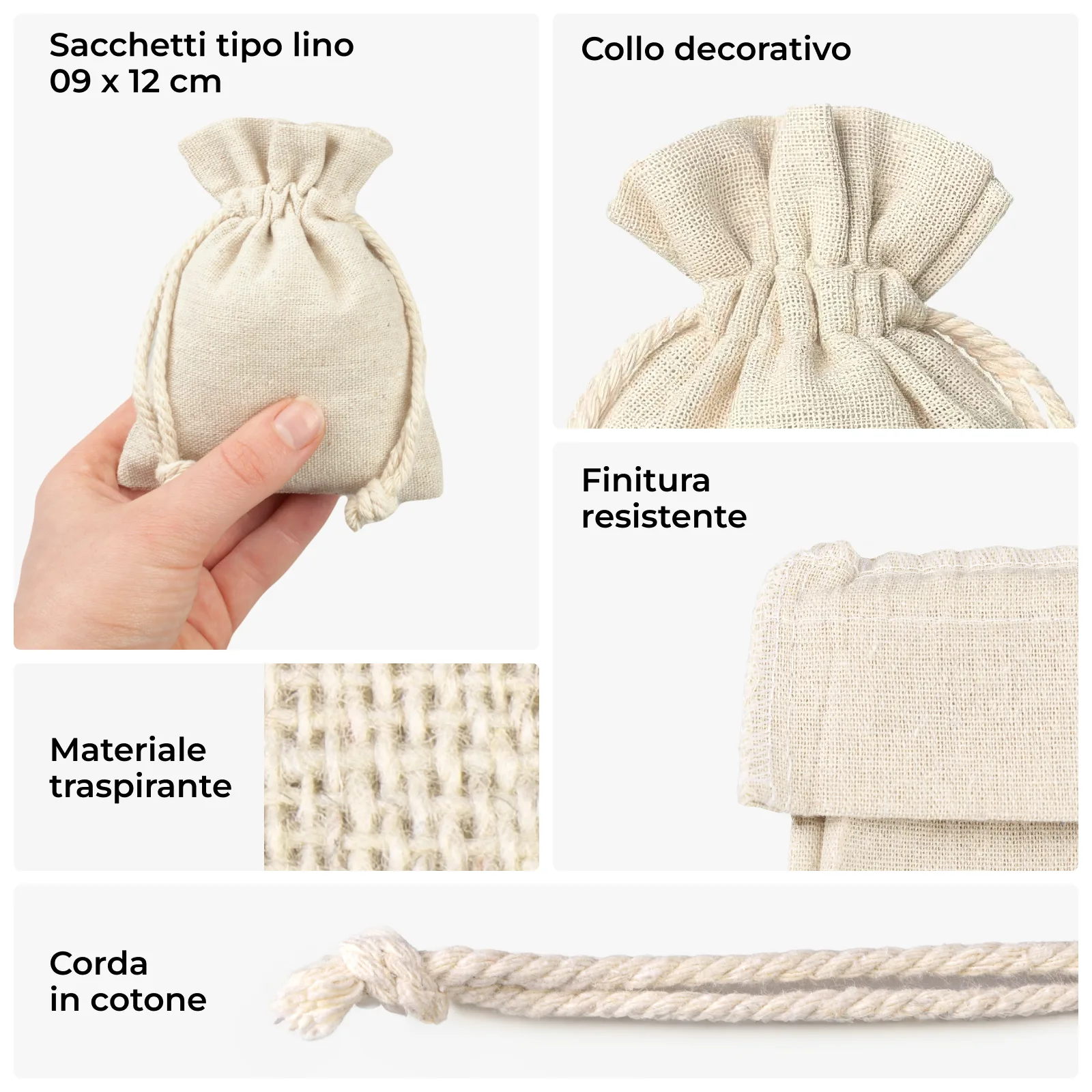 10 pz Sacchetti tipo lino 9 x 12 cm - naturale