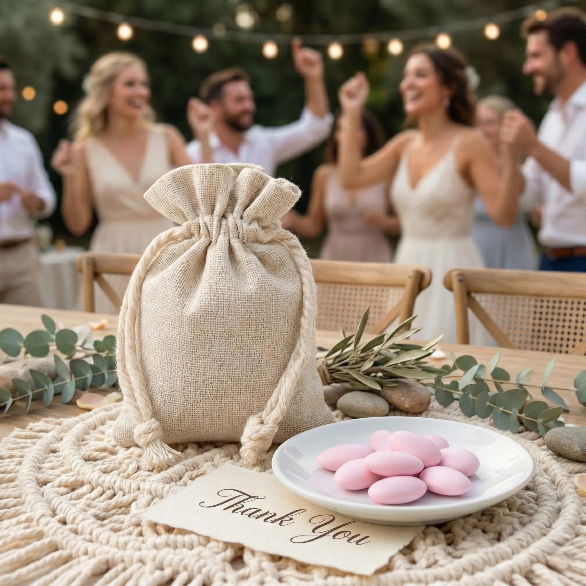 Stampa del logo disponibile da 30 pezzi, tempi di produzione 5-10 giorni lavorativi, opzione express 48 h.Valorizza piccoli oggetti e regali con una presentazione naturale - ordina ora i sacchetti effetto lino 9x12 cm.