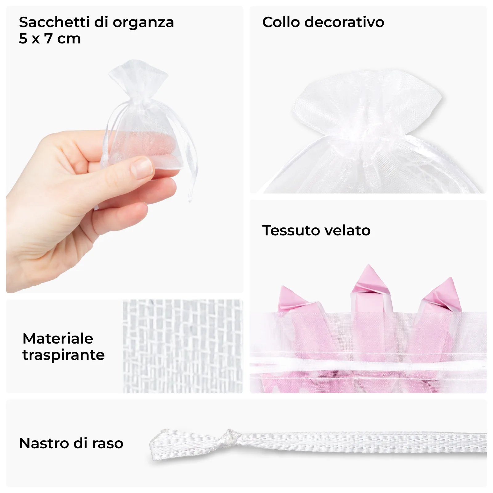 25 pz Sacchetti di organza 5 x 7 cm - bianco