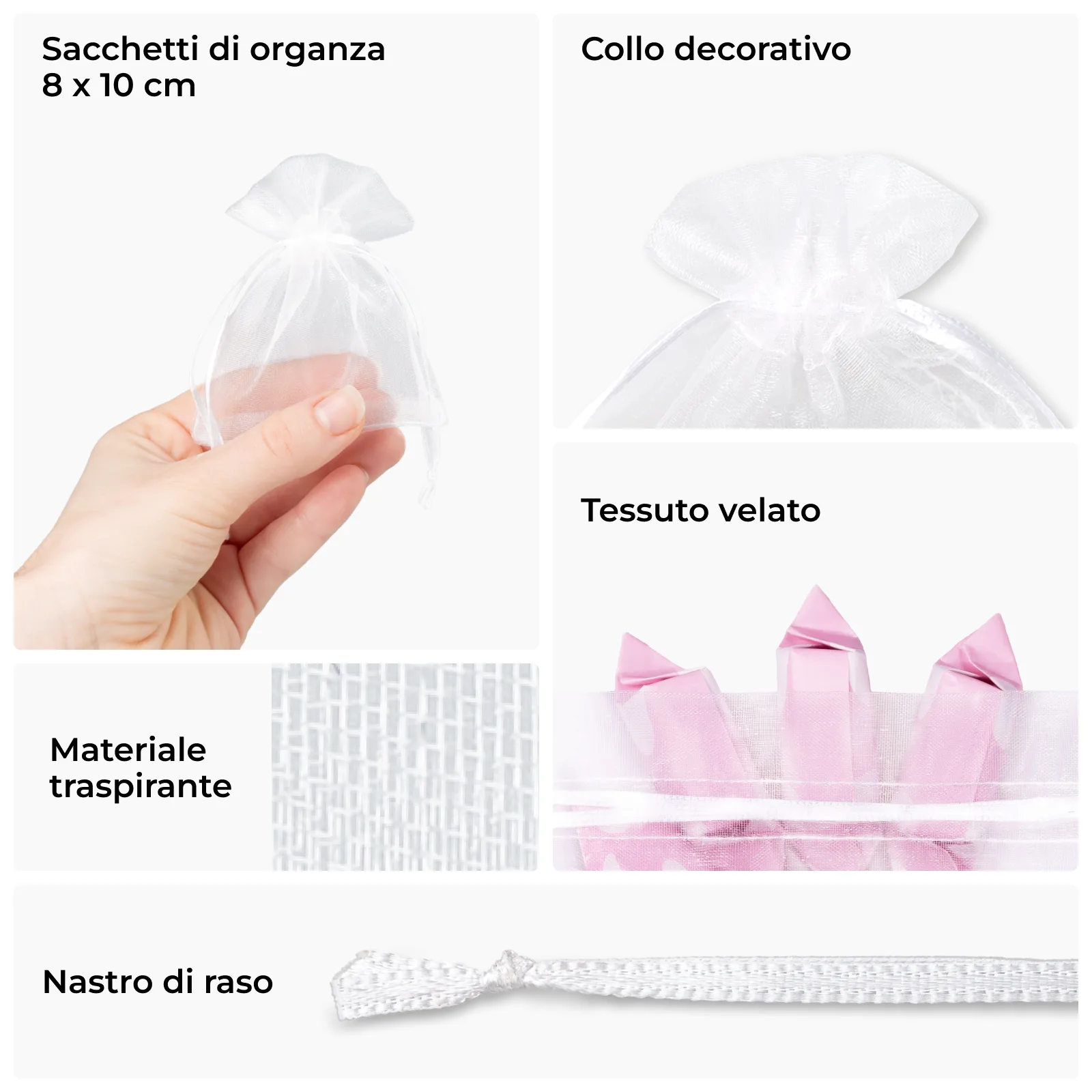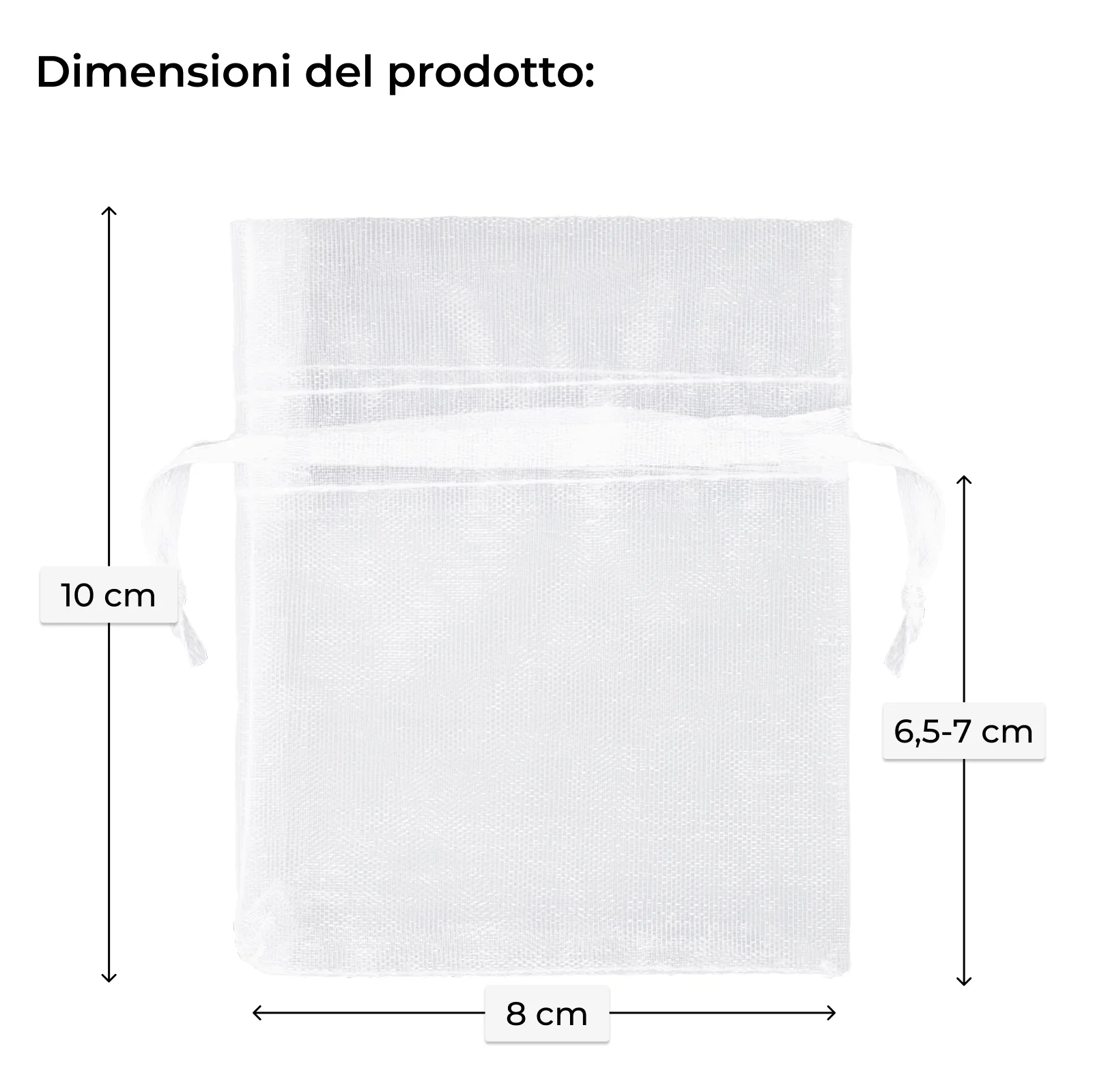25 pz Sacchetti di organza 8 x 10 cm - bianco