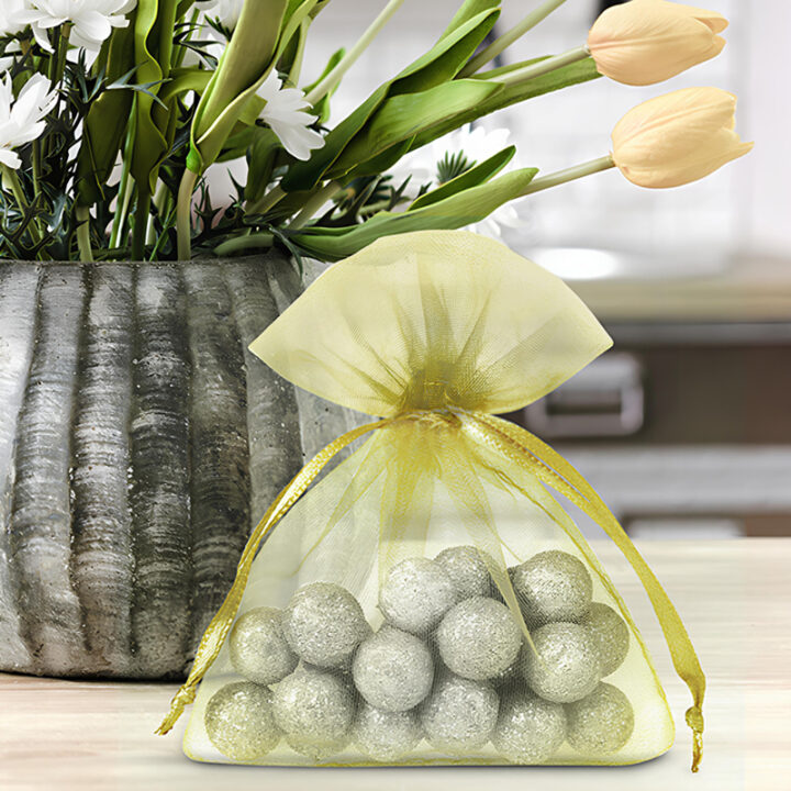 L'organza è un tessuto semitrasparente con una struttura molto luminosa, che non solo ha una presenza elegante, ma è anche contrariamente alle apparenze molto solida. I sacchetti in organza sono quindi il modo pratico per riporre piccoli oggetti per un lungo periodo di tempo.