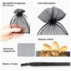 Una serie di piccoli sacchetti di organza di dimensioni 10 cm x 13 cm nel colore nero. Questo pratico kit contiene 25 sacchetti, in modo che acquisto è sufficiente per un lungo tempo.