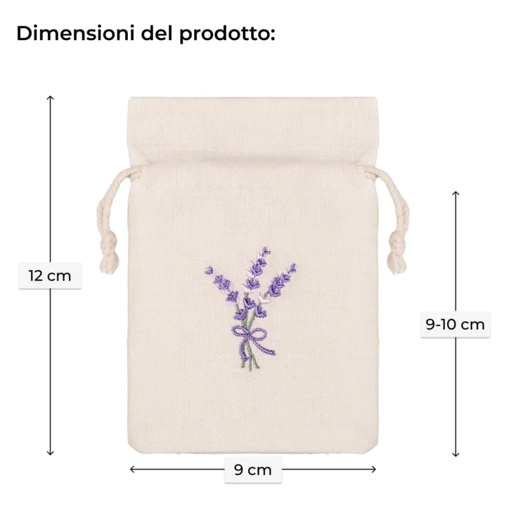 Il delicato ricamo della lavanda sul fronte aggiunge un tocco romantico e artigianale, rendendo questi sacchetti ideali per profumatori, cosmetici naturali, saponi, gioielli fatti a mano o piccoli regali.