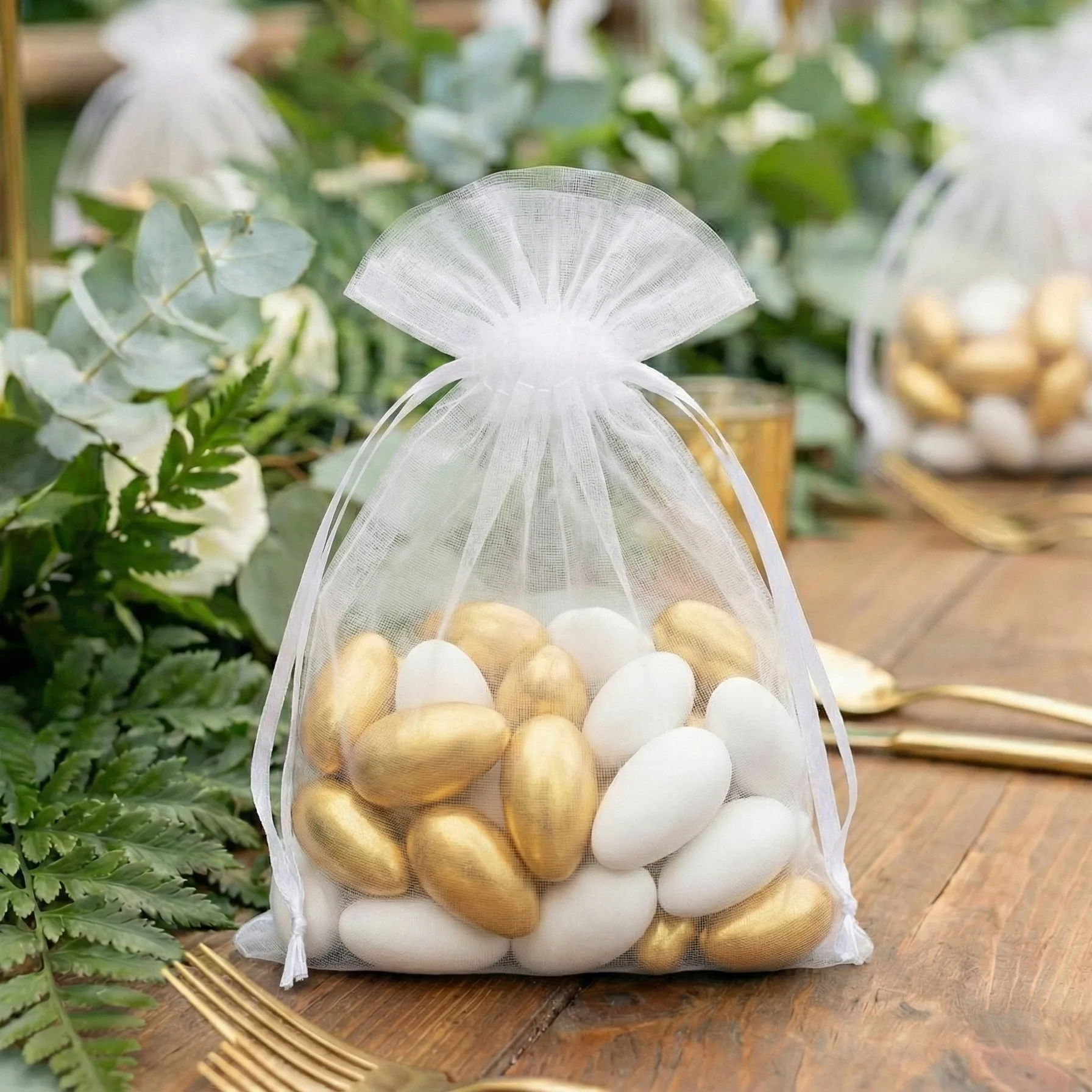 I sacchetti di organza sono un ottimo modo per il confezionamento degli articoli di piccole dimensioni e anche numerosi ninnoli. La struttura solida di organza garantisce la conservazione sicura, e la sua trasparenza evita la lunga ricerca di oggetti - gli articoli impacchettati invece saranno visibili a prima vista!