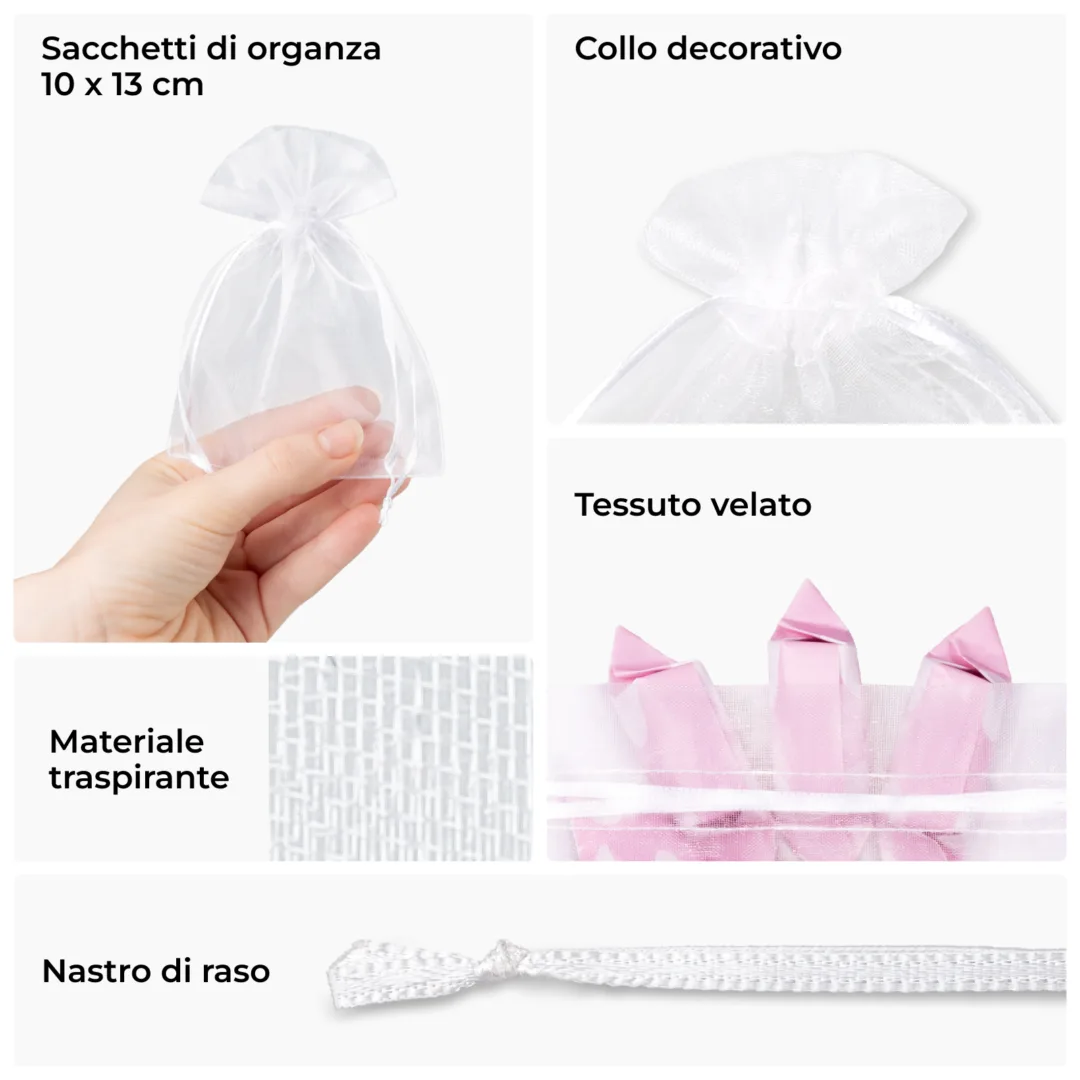 25 pz Sacchetti in organza 10 x 13 cm – bianco