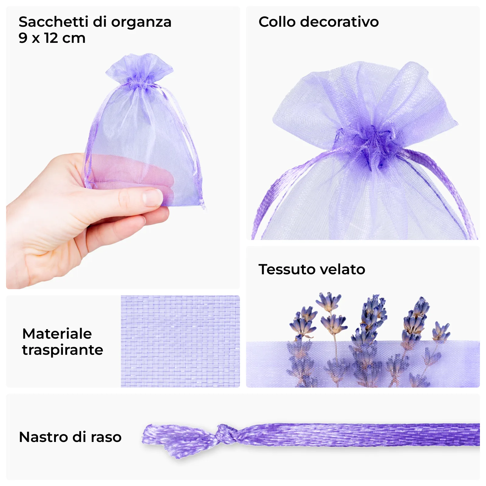 Una scelta pratica per produttori di lavanda e linee regalo. Capienza ~12 g per sacchetto. Personalizzazione da 30 pz con logo, claim o grafica in alta definizione.