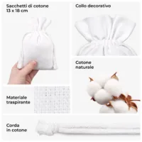 10 pz Sacchetti di cotone 13 x 18 cm – bianco